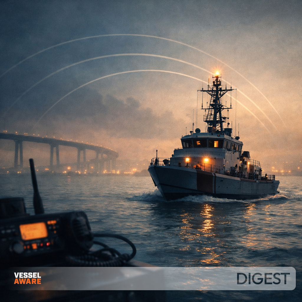 Pan Pan, Pan Pan, Pan Pan, All Stations, All Stations, All Stations, This is United States Coast Guard Sector San Diego, United States Coast Guard Sector San Diego, United States Coast Guard Sector San Diego, March 19th, 2026 time, 2030 local, 0330 Universal Coordinated Time. The Coast Guard has received a report of a person in the water under the Coronado Bridge. All vessels are requested to keep a sharp lookout if this is possible and report all sightings to the Coast Guard's. Break. This is United States Coast Guard Sector San Diego, out.